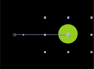As you can see, the motion path now looks different: the dots on the second part of the path are spaced further apart than in the first part of the path. Remember how the dots represent frames? The first portion is 2 seconds long, or 60 frames long, while the second portion is 1 second long, or 30 frames.